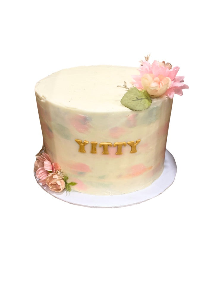 Baby Girl Brushstroke Floral Cake
